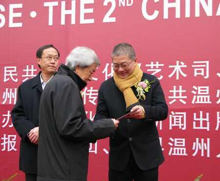 浙江省文联主席许江为香港雕塑协会会长文楼先生颁发中国雕塑终身成就奖